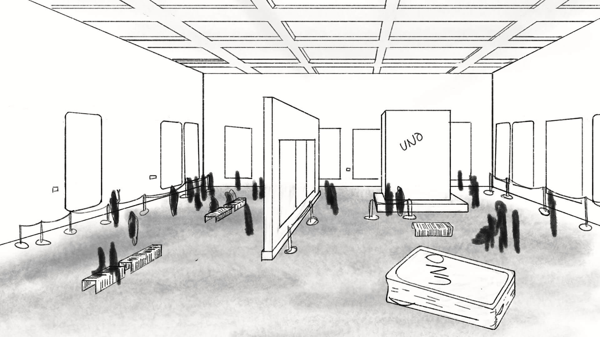 If these cards feature works by famous artists, then their natural ecosystem is an art gallery. Mattel has long been a powerhouse in miniature set design—decades of Barbie backdrops and Hot Wheels cityscapes prove it. So I proposed we build a miniature art world for what are essentially art prints by contemporary greats, leveraging Mattel's understated superpower: set creation.
